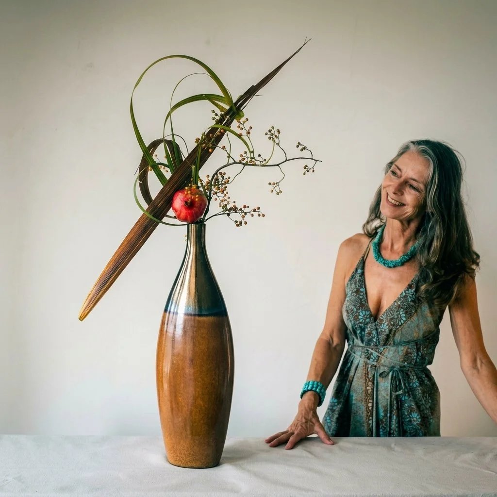 I hold a Sogetsu Ikebana Teacher Diploma (Third Grade), and my background in psychology and art therapy informs a reflective and symbolic approach to my practice.